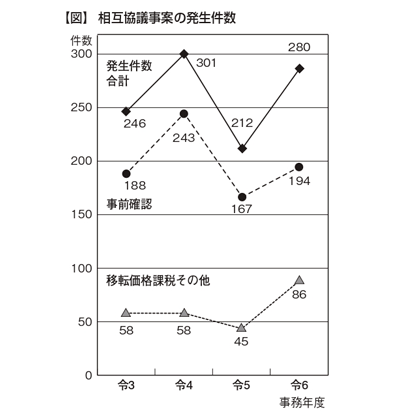 国税庁が11月11日に公表した令和6事務年度の「相互協議の状況」によると、相互協議事案の発生件数は280件と増加(前事務年度比132%)し、このうち事前確認に係るものは194件、移転価格課税その他に係るものは86件(内訳は移転価格課税67件、PE事案や源泉所得税事案等が19件)であることが分かった(参照)。